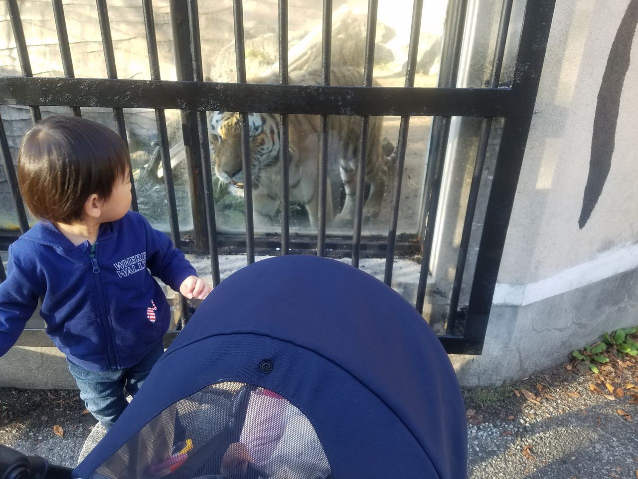 トラに興味津々でしたが、近くでみると思っていたより大きかったのかさすがに少しびびってました笑
