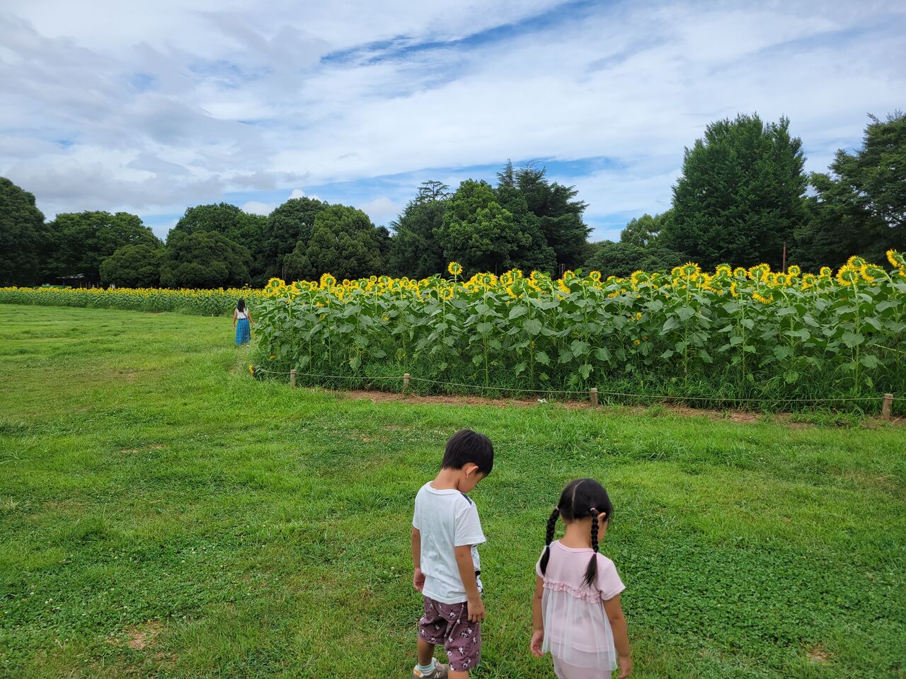今ヒマワリが咲き誇っていてとてもきれいなのですが、子供たちはヒマワリの真似してました笑